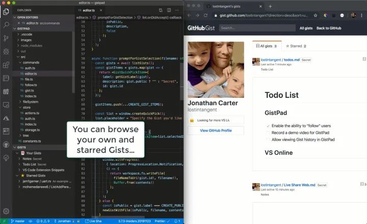 直到前几天,我在vscode 插件市场里逛街的时候,发现了一个还不错的gist书写工具 GistPad
