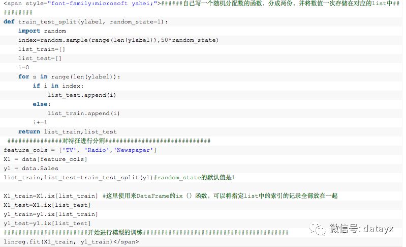 2、自己写函数来认为的随机构造训练集和测试集。(这个代码我会在最后附上。)