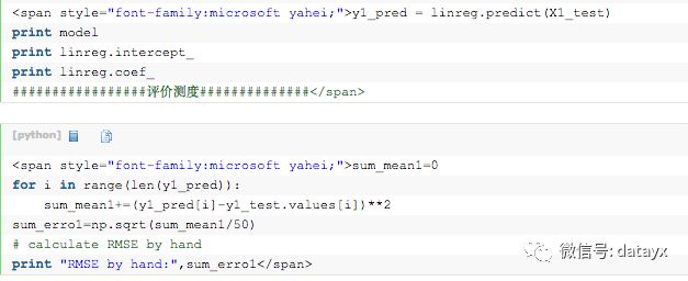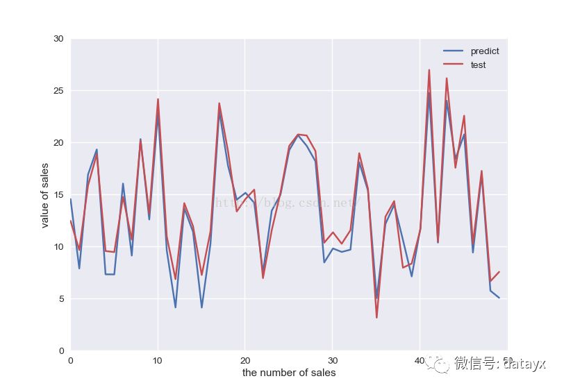 #X = data[['TV', 'Radio', 'Newspaper']]#只需修改这里即可<pre name="code" class="python" style="font-size: 15px; line-height: 35px;">X = data[['TV', 'Radio']] #去掉newspaper其他的代码不变