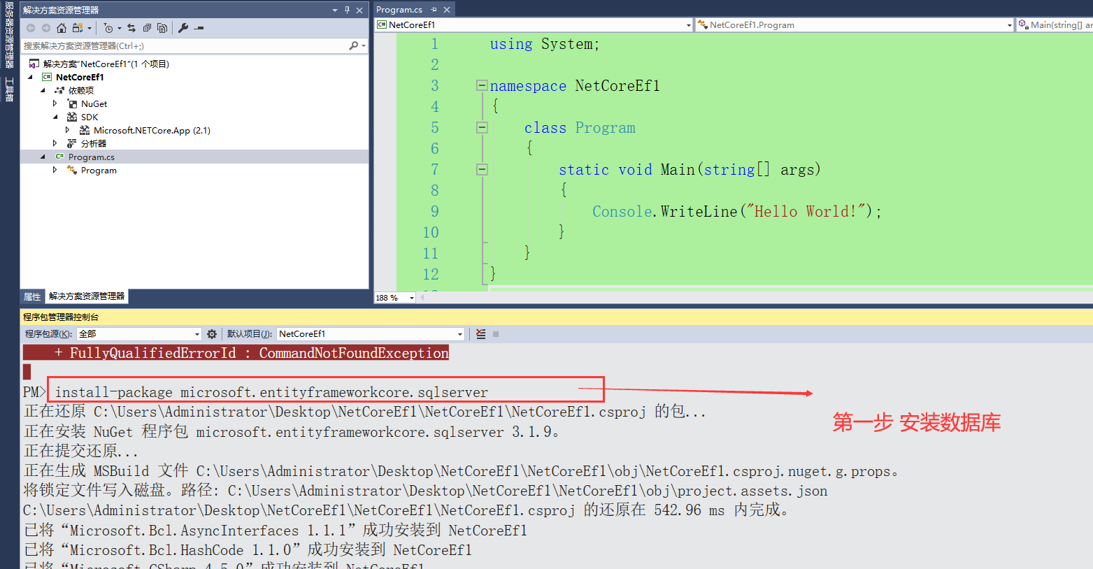第二步,安装EF(四个步骤)
