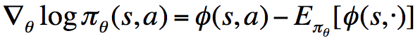 也即策略梯度可以等价地表示为策略乘以一个似然函数的倒数,这个与极大似然操作形式一致的式子叫做Score Function ,表示为: