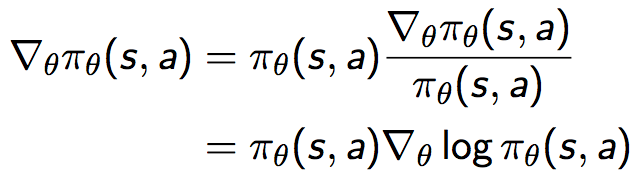 我们通过这个简单的one-step MDP可知,奖励函数的导数等于socre function乘以reward在策略下的期望,也即: