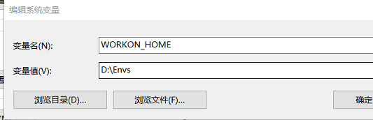 在我的电脑->右键->属性->高级系统设置->环境变量->系统变量中添加一个参数WORKON_HOME,将这个参数的值设置为你需要的路径。