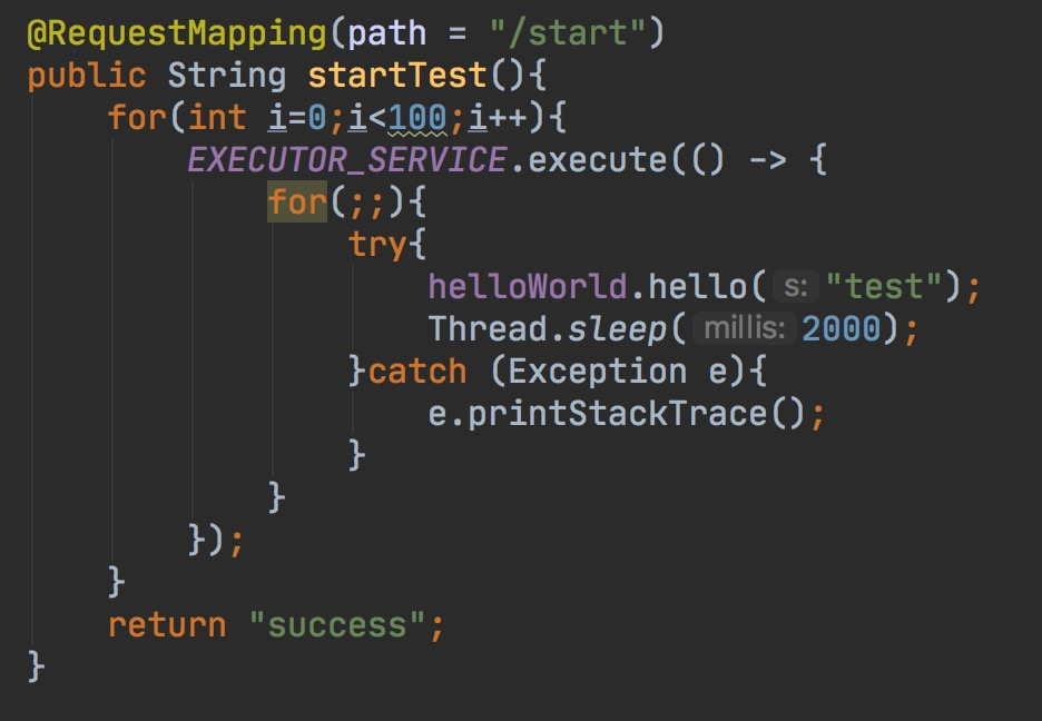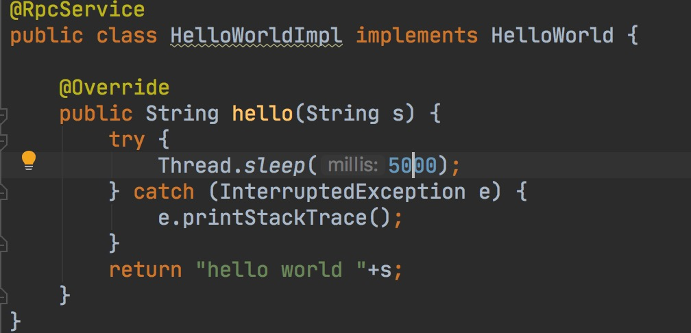 这里先定义一个阻塞时间长的服务HelloWorld。