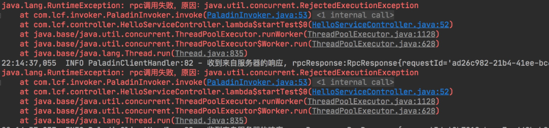 服务疯狂抛出拒绝异常。我们再输入localhost:8080/helloPaladin?value=lalala,多点几次,可以发现页面很快就能返回结果,这也意味着这个服务并没有被干扰。