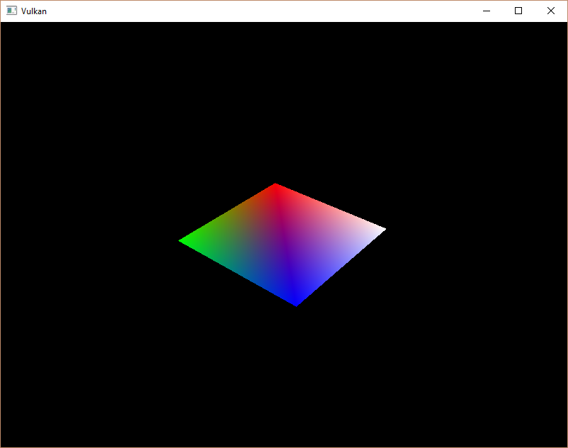 The rectangle has changed into a square because the projection matrix now corrects for aspect ratio. The updateUniformBuffer takes care of screen resizing, so we don't need to recreate the descriptor set inrecreateSwapChain.