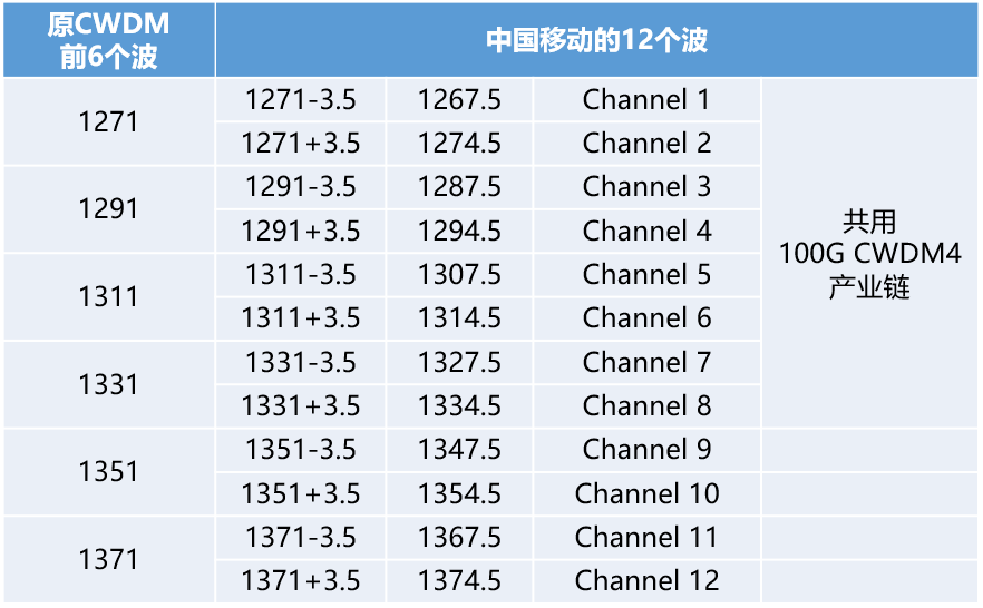 昨天我介绍5G前传的时候说过,现在5G前传都要求至少12个波长通道,所以,三大运营商的方案,都以实现12波为目的。