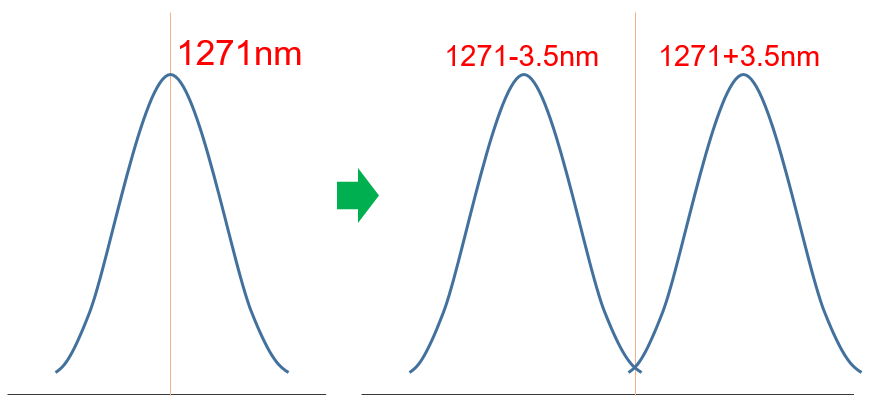 MWDM的原理,就是重用25G CWDM前6波,通过增加TEC(Thermal Electronic Cooler, 半导体制冷器)温度控制,左右偏移3.5nm波长,形成12个波长,方案如下: