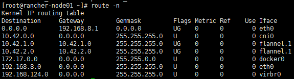 flannel会对路由表进行修改,从而能够实现容器跨主机的通信。