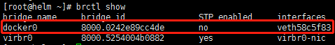 2)运行容器时,在宿主机上创建虚拟网卡veth pair设备,veth pair设备是成对出现的,从而组成一个数据通道,数据从一个设备进入,就会从另一个设备出来。将veth pair设备的一端放在新创建的容器中,命名为eth0;另一端放在宿主机的docker0中,以veth为前缀的名字命名。通过 brctl show 命令查看放在docker0中的veth pair设备