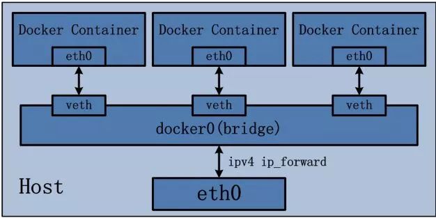 在默认情况,Docker使用bridge网络模式,bridge网络驱动的示意图如下,此文以bridge模式对Docker的网络进行说明。