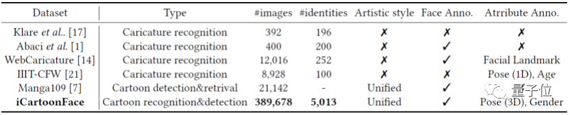 下图是iCartoonFace与其他已有动漫数据集的对比,基于这个数据集设计框架,可以有效地提高卡通人物识别性能。