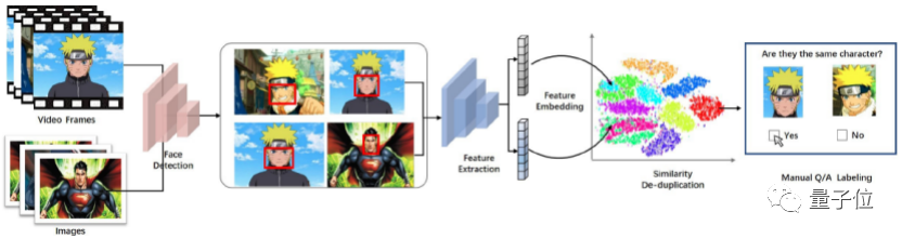 为了减少人工标注的工作量,研究者们设计了一种半自动数据集构建框架,用于构建iCartoonFace数据集。