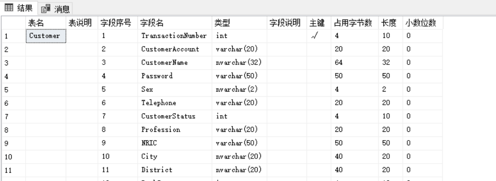 where d.name='Customer' --如果只查询指定表,加上此红色where条件,tablename是要查询的表名;去除红色where条件查询所有的表信息