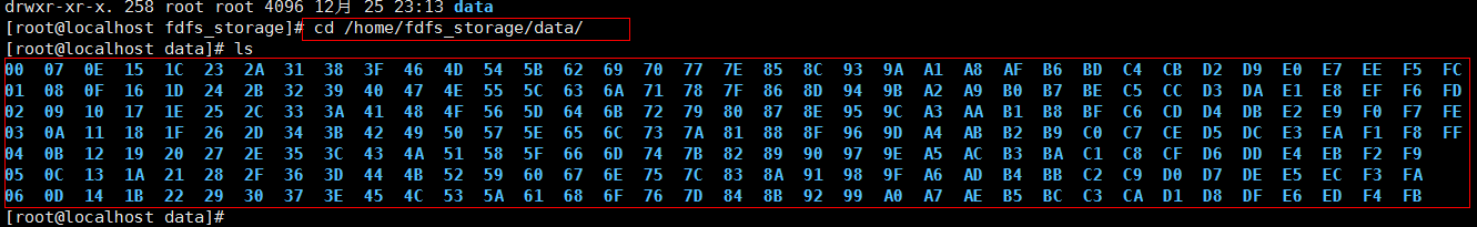 启动完成后进入 /home/fdfs_storage/data 目录下,显示目录如下: