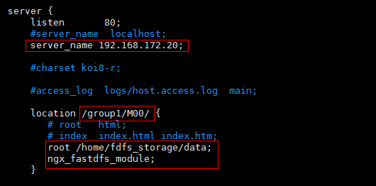 (b.) location /group1/M00/:group1为nginx 服务FastDFS的分组名称,M00是FastDFS自动生成编号,对应store_path0=/home/fdfs_storage,如果FastDFS定义store_path1,这里就是M01