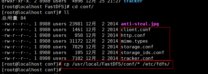 (4)安装成功将安装目录下的conf下的文件拷贝到/etc/fdfs/下;