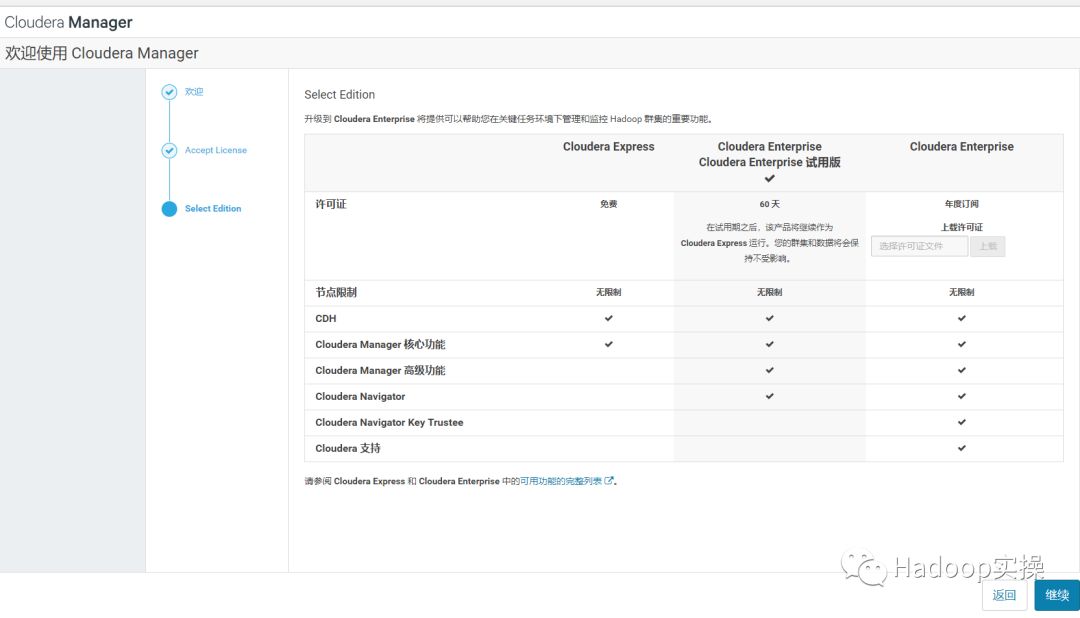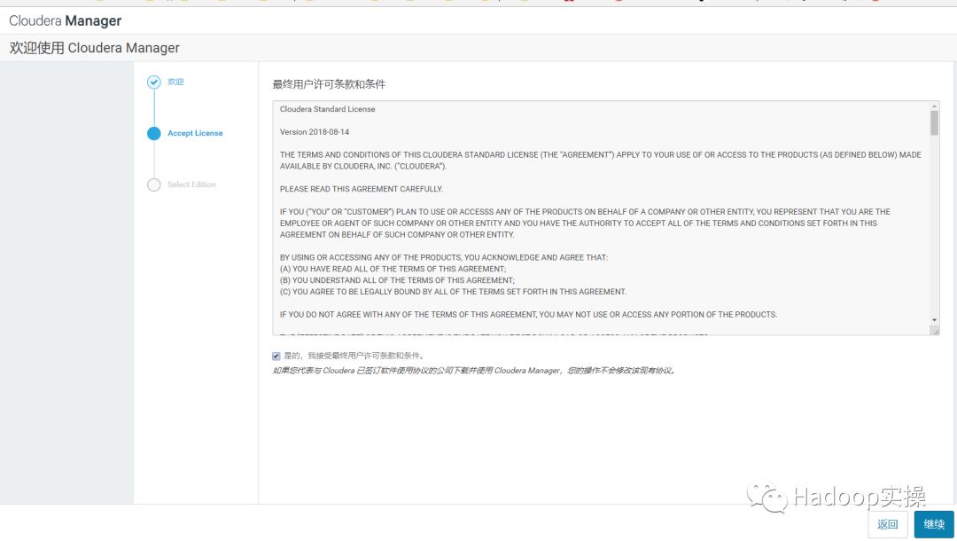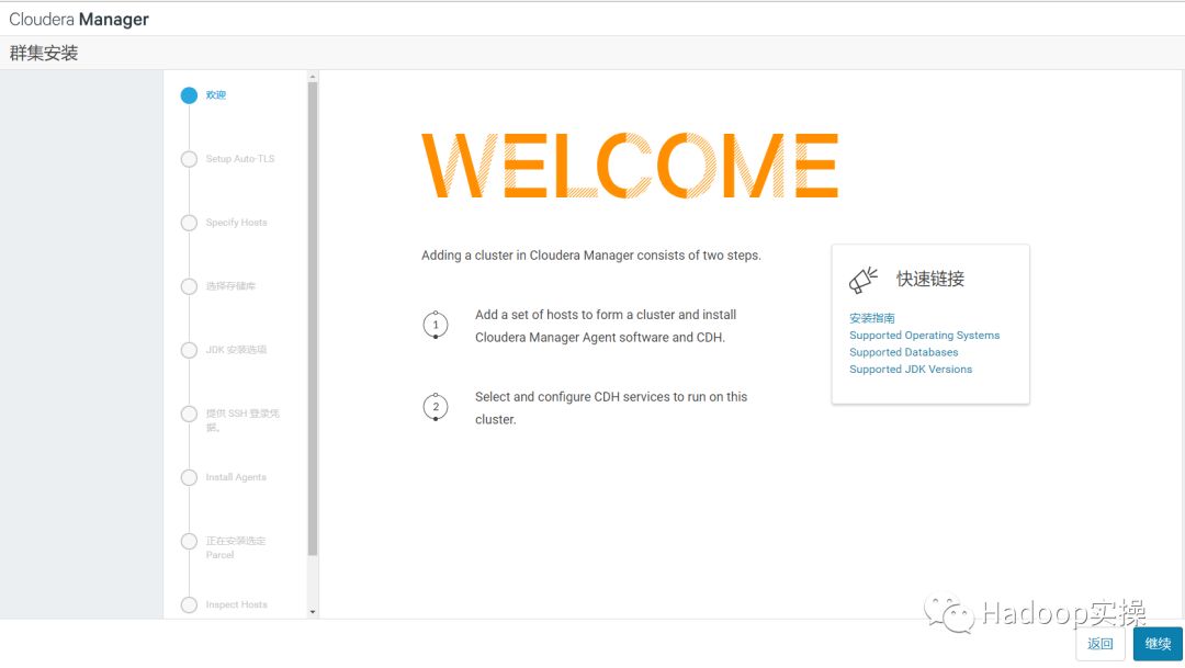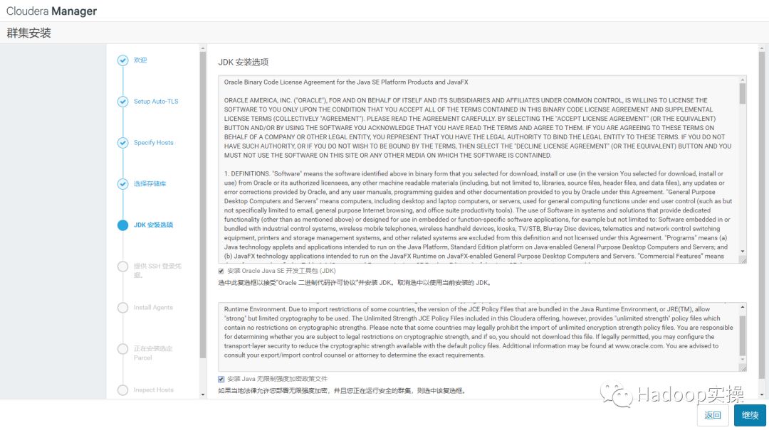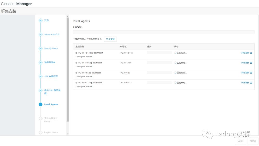 12.点击“继续”,进入下一步,安装Cloudera Manager相关到各个节点