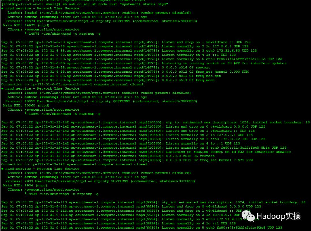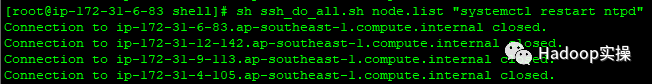 [root@ ip-172-31-6-83 shell]# sh ssh_do_all.sh node.list "systemctl restart ntpd"