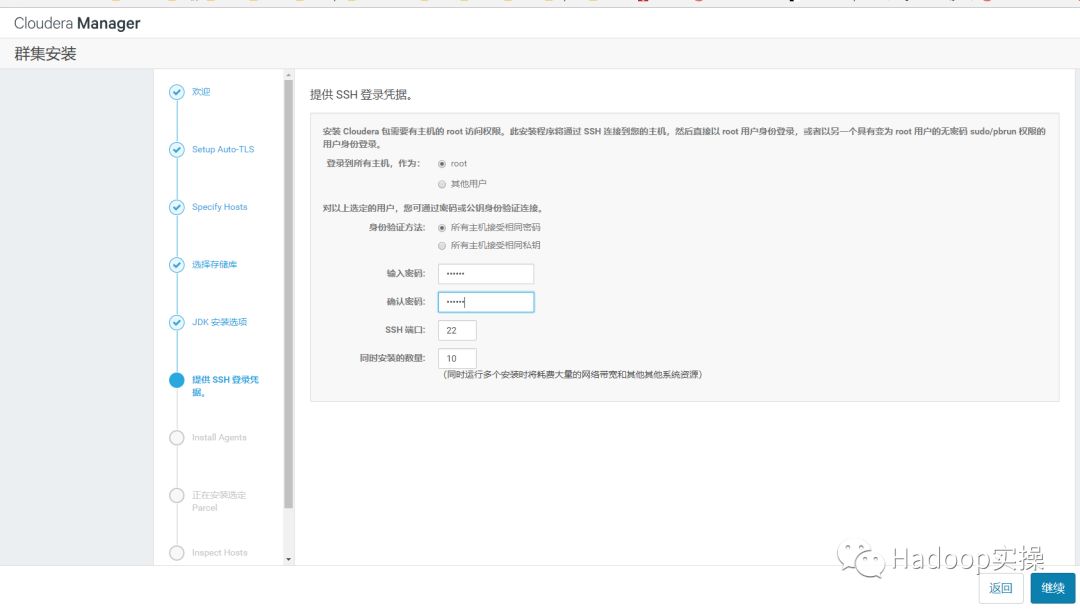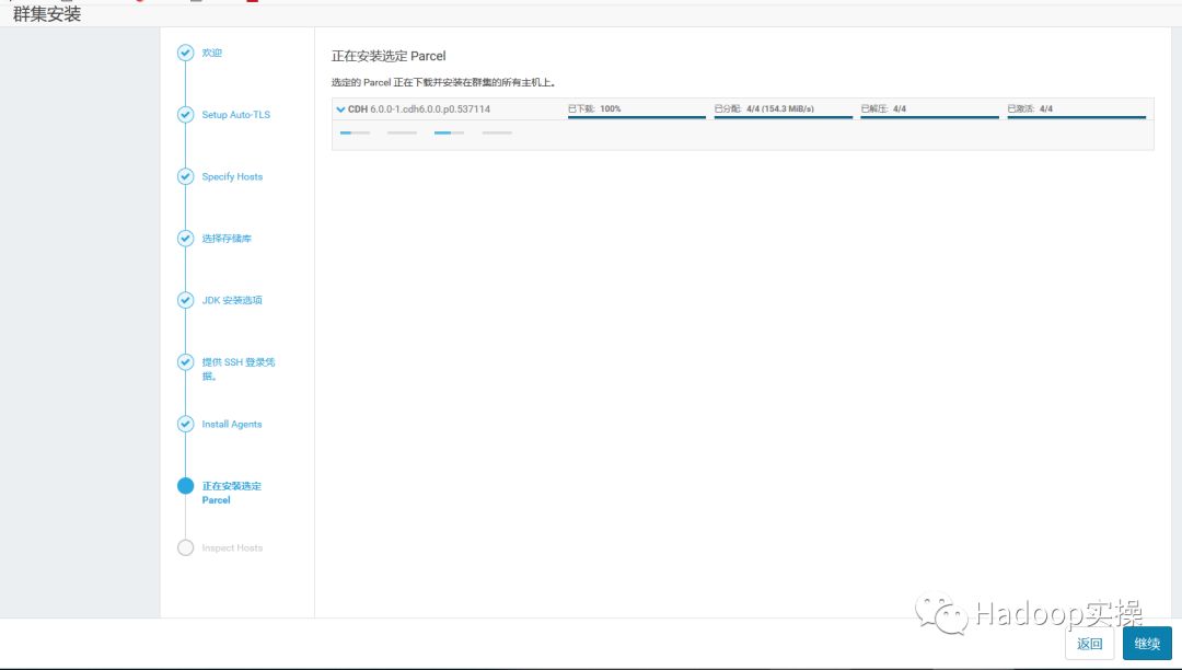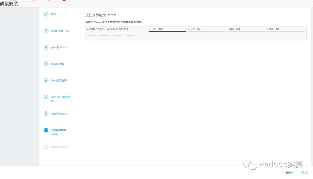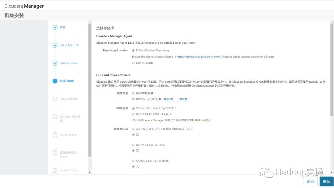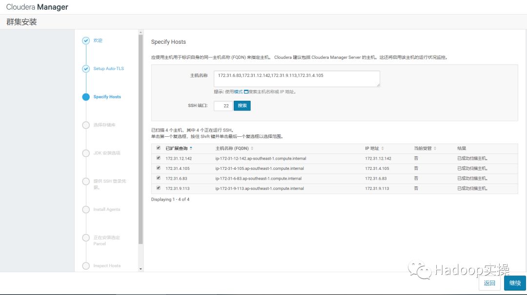 13.点击“继续”,进入下一步安装cdh到各个节点