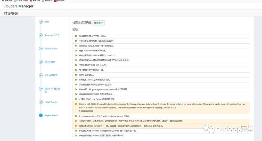 14.点击“继续”,进入下一步主机检查,确保所有检查项均通过。Fayson的机器因为有多个Java版本有一些警告,此步忽略。