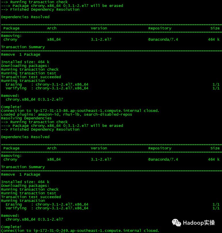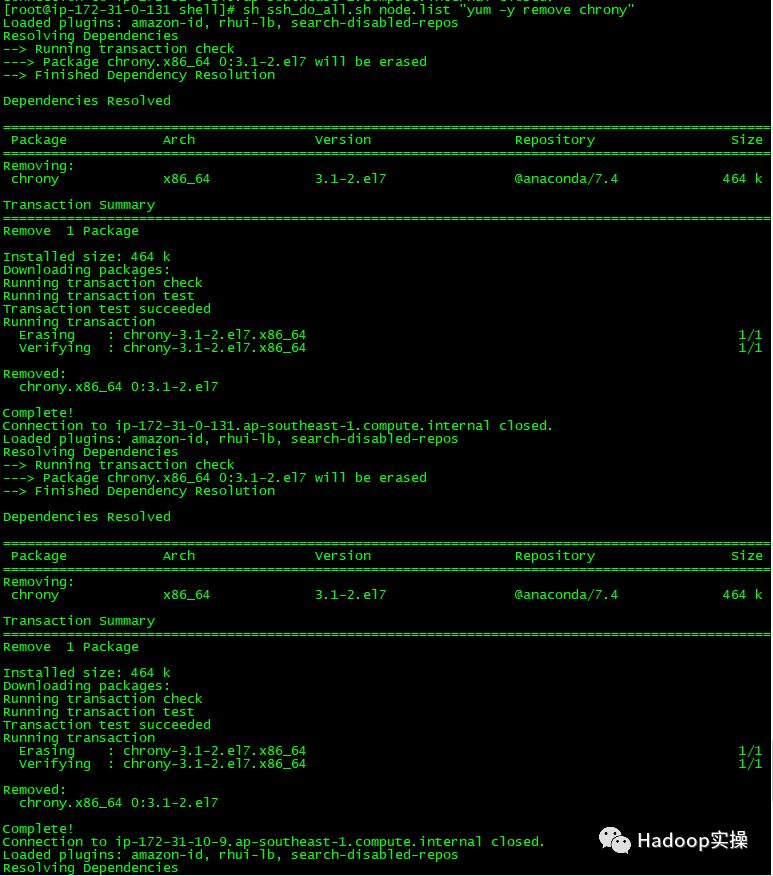 [root@ip-172-31-6-83 shell]# sh ssh_do_all.sh node.list "yum -y remove chrony"