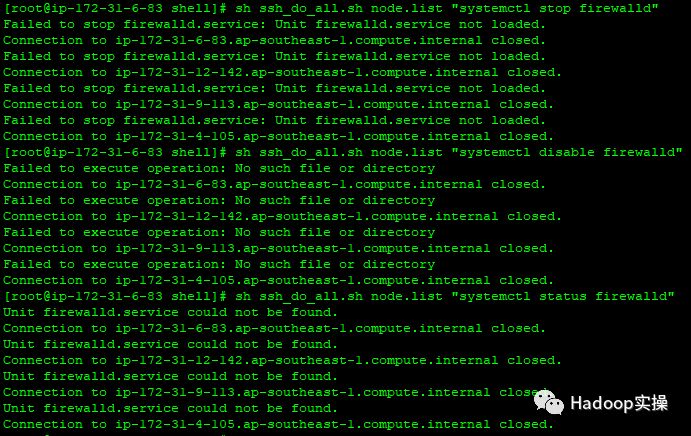 [root@ip-172-31-6-83 shell]# sh ssh_do_all.sh node.list "systemctl disable firewalld"