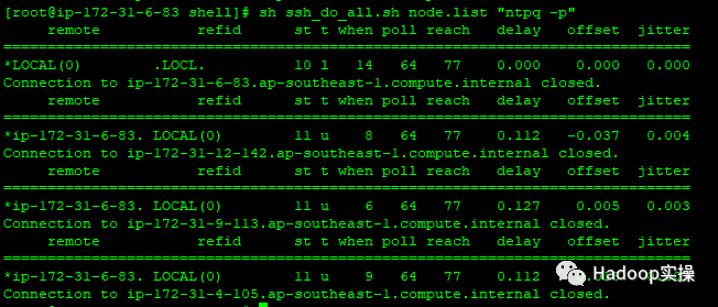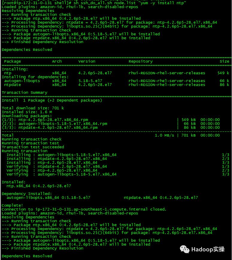 [root@ip-172-31-6-83 shell]# sh ssh_do_all.sh node.list "yum -y install ntp"