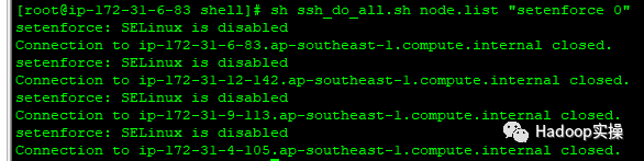 [root@ip-172-31-6-83 shell]# sh ssh_do_all.sh node.list "setenforce 0"