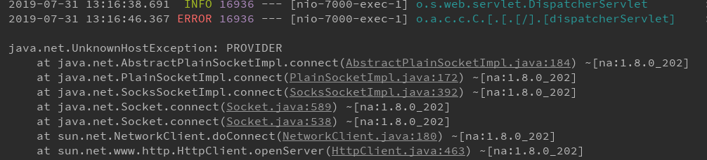 java.net.UnknownHostException: PROVIDER