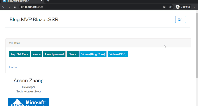 这里我们使用到了Razor的Page功能,添加登录和登出功能,具体的使用方法可以在微软官网查看,相应的代码很简单: