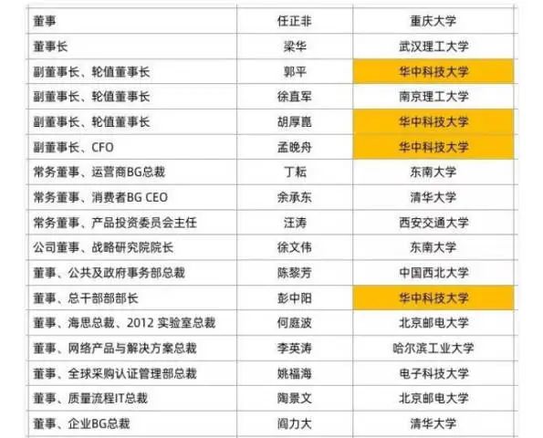 有人说,华为早期的员工中有30%来自于华中科技大学的毕业生,可以说这所学校是华为公司人才的摇篮。