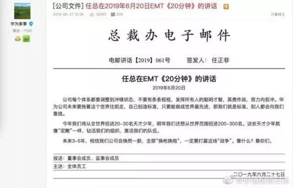 这也印证了华为早在6月份的另一封内部邮件的内容: