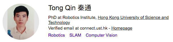 秦通毕业于香港科技大学,学生时代他就在IEEE TRO、ICRA、IROS、ECCV等国际顶级期刊和会议发表多篇论文,获得IEEE IROS 2018最佳学生论文奖。