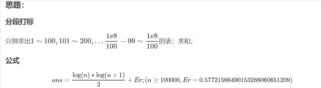 求调和级数 1/1+1/2+1/3+......+1/n。(n<=1e8)