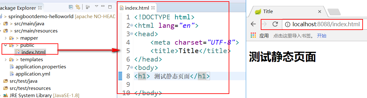 spring boot项目如果要展示静态页面,可以把html、js、css等文件放在resources目录下的static或public目录里面(如果没有可以直接创建)。