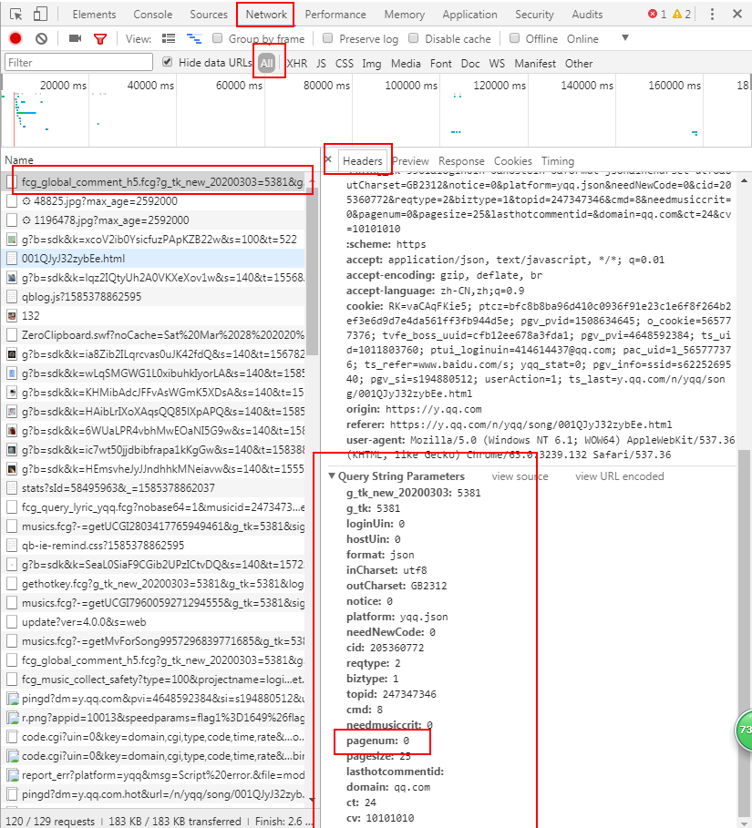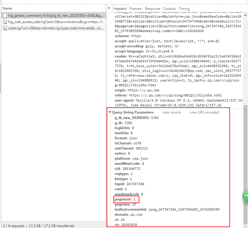2.下面来考虑如何获取后面的评论,下图是项目(二)评论页面的parms参数;
