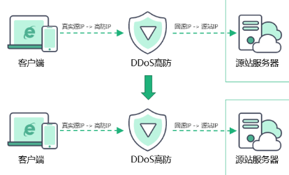 高仿IP服务算是终极抗D方案了。公司可以通过配置DDoS高防IP服务,把自己的网站域名解析指向高防IP,并配置源站IP。所有公网流量都经过高防IP服务,在高防IP服务上进行清洗过滤后再将正常流量转发到源站IP,从而确保源站IP稳定访问。另外,高防IP服务往往拥有超大带宽,一般的CC攻击几乎不可能耗尽高防IP服务的带宽资源。高防IP防御效果非常好,不过价格也比较贵。我们当时就是采用了这个方式,紧急采购了高防IP,并快速接入我们的网站。