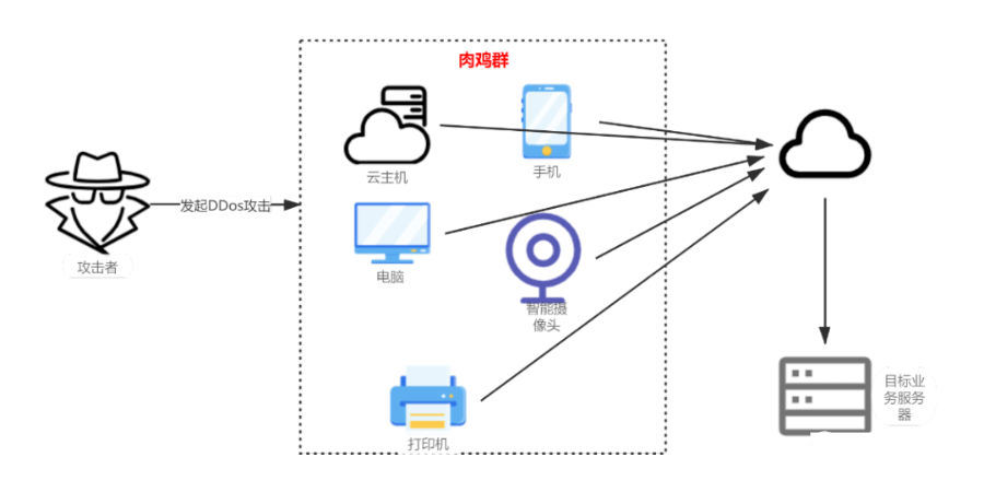 DDos,全称Distributed Denial of Service,中文意思为“分布式拒绝服务”,就是利用大量合法的分布式计算机设备对目标服务器(网站等)发送请求,导致目标服务器CPU、内存、带宽等资源耗尽,从而导致正常用户无法访问目标服务器。通俗点讲就是利用网络节点资源,如:IDC服务器、个人PC、手机、智能设备、打印机、摄像头等对目标发起大量攻击请求,从而导致服务器拥塞,进而无法对外提供正常服务。