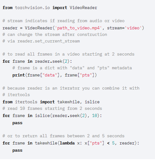 此版本引入了一个新的视频阅读API,可以更细粒度地控制视频的更新迭代。它支持图像和音频,并实现了迭代器接口,因此可以与其他python库(如itertools)交互操作。