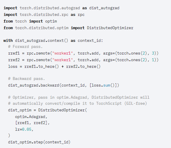 在早期版本中,Torch.Distributed.rpc.rpc_async已在TorchScript中提供。对于PyTorch1.7,此功能将扩展到剩下的两个核心RPCAPI:torch.Distributed.rpc.rpc_sync和torch.Distributed.rpc.remote。