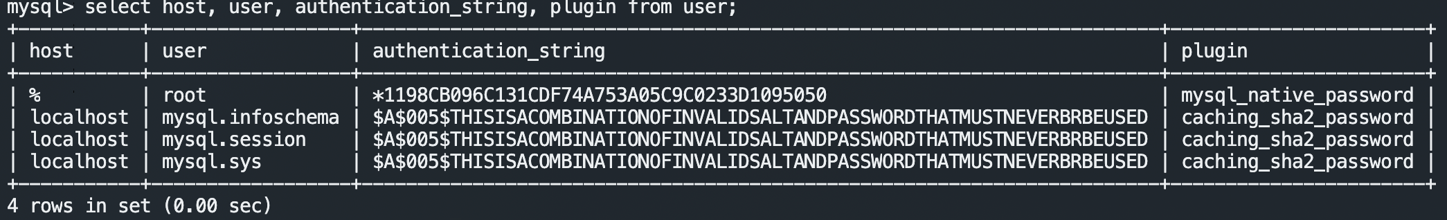- 在 mysql 数据库的 user 表中查看当前 root 用户的相关信息