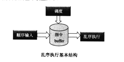 在顺序执行内核中,指令依次流经各个流水线单元,不需要进行缓存,而为了要能乱序执行,首先需要一个Buffer来缓存还没有执行的指令,然后在这个 Buffer中去调度指令的执行顺序。乱序执行内核的基本模型如下: