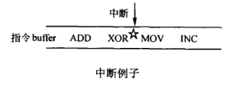 在指令的执行过程中,通常会有中断和异常产生,如在下面的这个例子中,