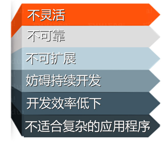 不可扩展 - 由于每次需要更新应用程序时都无法轻松扩展应用程序,因此必须重建整个系统