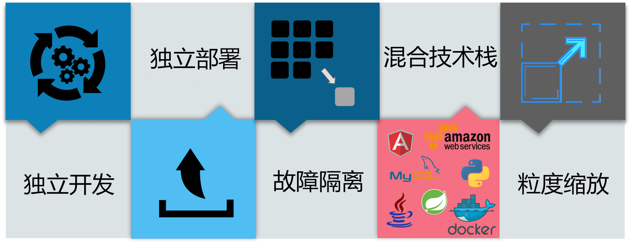 解耦 - 系统内的服务很大程度上是分离的。因此,整个应用程序可以轻松构建,更改和扩展