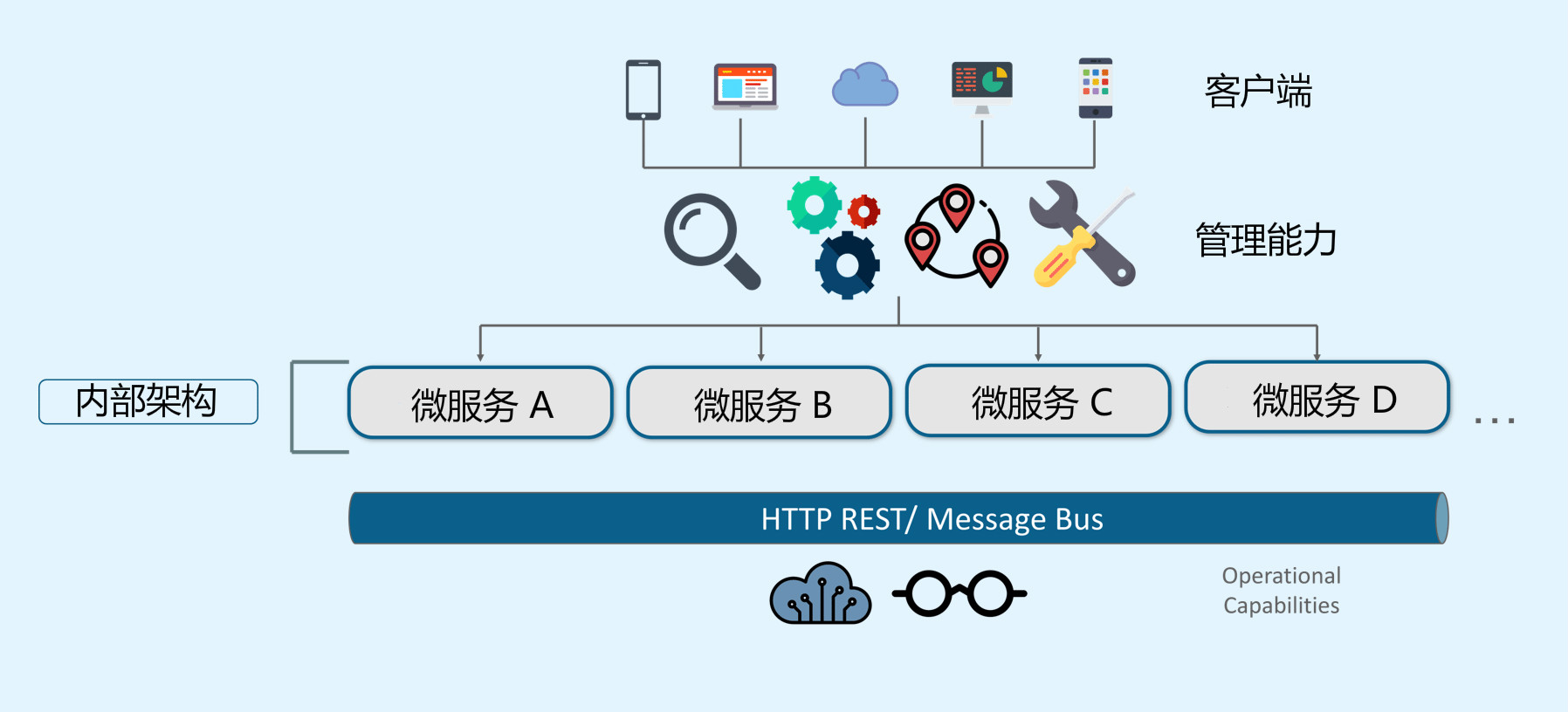 1,来自不同设备的不同客户端尝试使用不同的服务,如搜索,构建,配置和其他管理功能