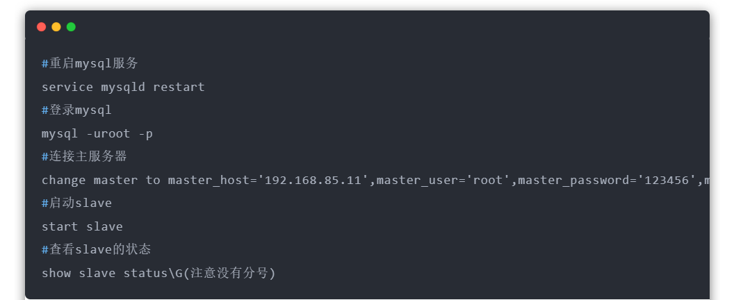 然后就可以在主服务器进行相关的数据添加删除工作,在从服务器看同步状态了。