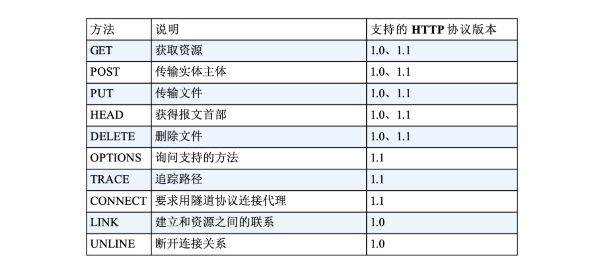 每个报文的起始行都是由三个字段组成:方法、URL 字段和 HTTP 版本字段。