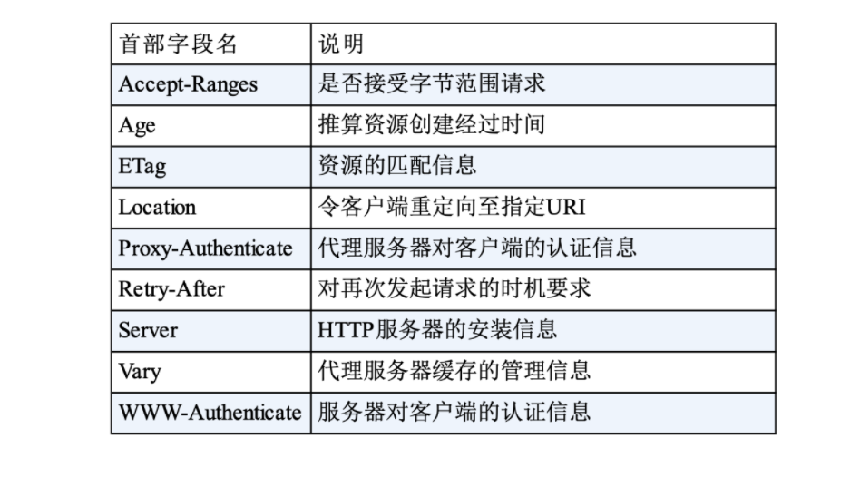 下面是一个响应头的汇总,基于 HTTP 1.1